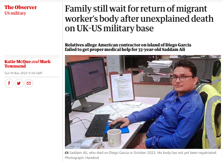 Read full investigation here: https://www.theguardian.com/us-news/2023/nov/19/family-still-wait-for-return-of-migrant-workers-body-after-unexplained-death-on-uk-us-military-base