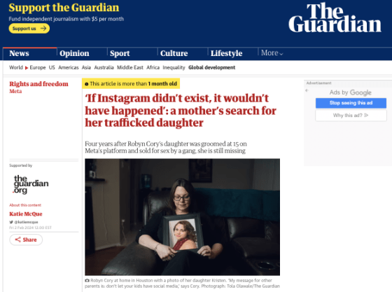 The Guardian: ‘If Instagram didn’t exist, it wouldn’t have happened’: a mother’s search for her trafficked daughter