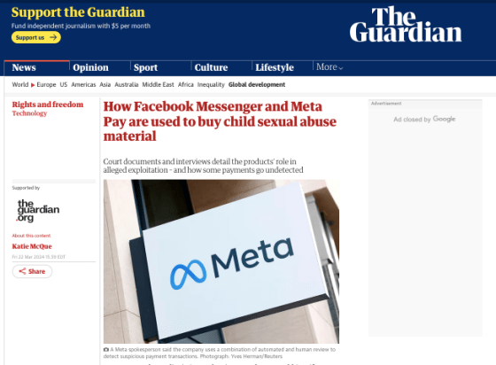 The Guardian: How Facebook Messenger and Meta Pay are used to buy child sexual abuse material