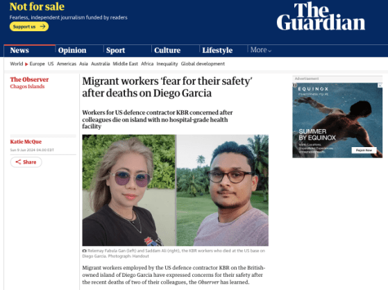 The Guardian: Migrant workers ‘fear for their safety’ after deaths on Diego Garcia