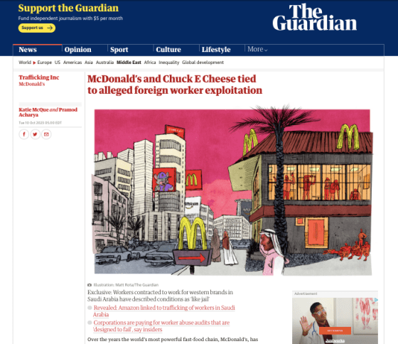 The Guardian / ICIJ: McDonald’s and Chuck E Cheese tied to foreign worker exploitation