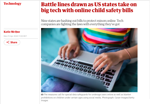 The Guardian: Battle lines drawn as US states take on big tech with online child safety bills