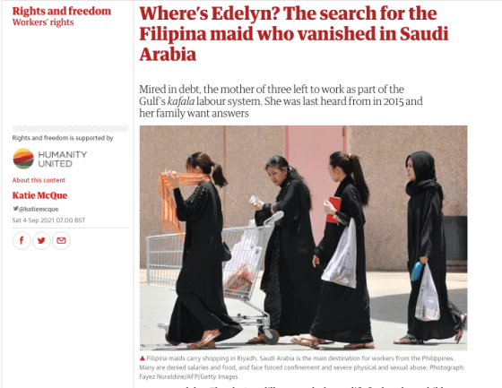 The Guardian: Where’s Edelyn? The search for the Filipina maid who vanished in Saudi Arabia
