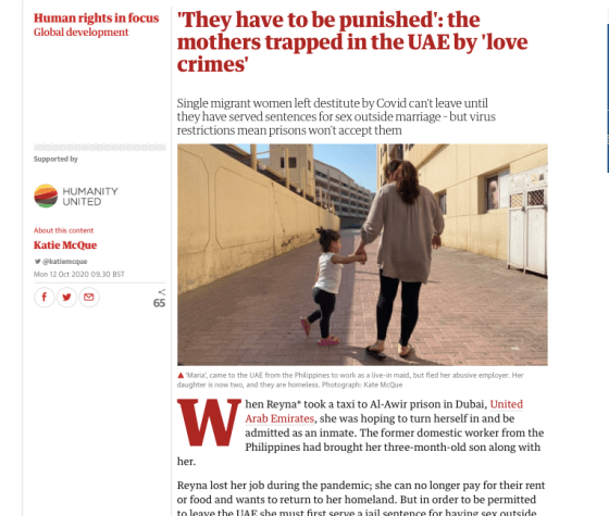 The Guardian: ‘They have to be punished’: the mothers trapped in the UAE by ‘love crimes’