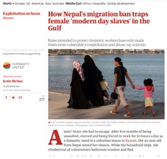 The Guardian: How Nepal’s migration ban trap female ‘modern day slaves’ in the Gulf