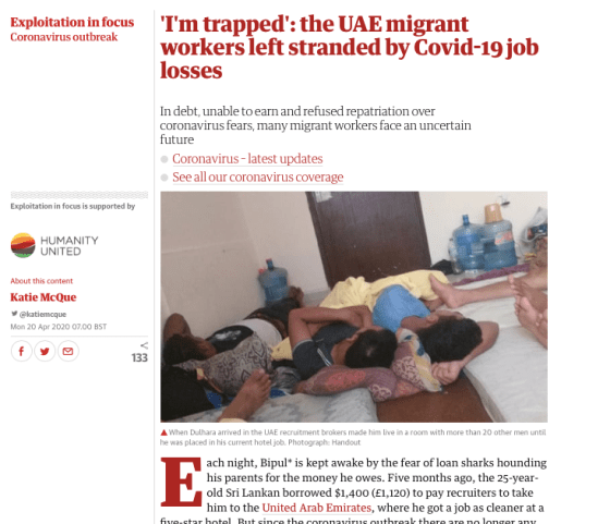 The Guardian: ‘I’m trapped’: the UAE migrant workers left stranded by Covid-19 job losses