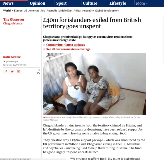 The Guardian: £40m for islanders exiled from British territory goes unspent