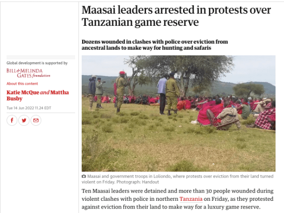 The Guardian: Maasai leaders arrested in protests over Tanzanian game reserve