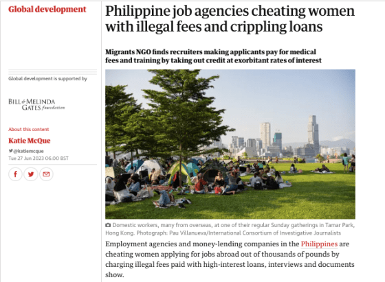 The Guardian: Philippine job agencies cheating women with illegal fees and crippling loans
