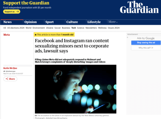 The Guardian: Facebook and Instagram ran content sexualizing minors next to corporate ads, lawsuit says